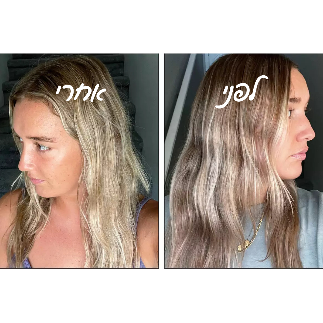 היא מנטרלת גוונים צהובים/כתומים לא רצויים, מחזקת את השיער עם ביוטין, ומחזירה לו ברק, גמישות ומראה בריא – כבר מהשימוש הראשון.