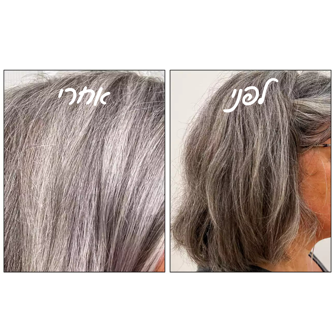 מנטרל את הגוונים הצהובים והכתומים – שומר על צבע נקי, רענן ומדויק בשיער בלונדיני, אפור ולבן.